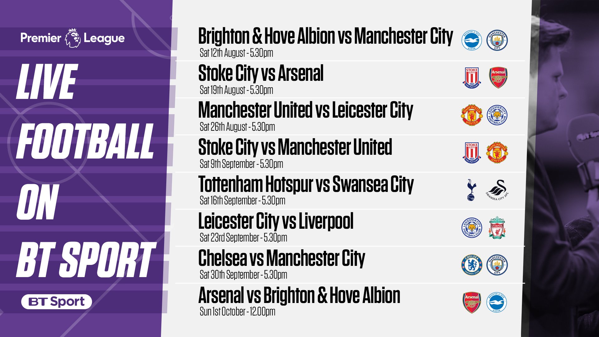Bt Sport On Twitter Live Tv Premier League Football Fixtures Our First Eight Televised Games Of The 2017 18 Premier League Season Huge Sides Huge Games Https T Co Kns54y4nm3 Twitter